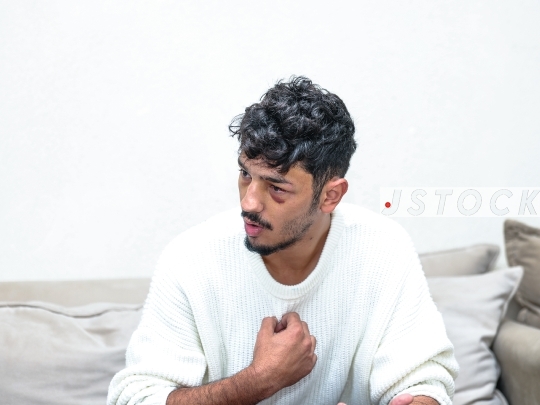 JERUSALEM, ISRAEL - DECEMBER 16, 2025: Qais Haddad, a 21-year-old security team leader from Beit Hanina, at Teddy Stadium. Haddad claims he was brutally attacked and subjected to racial slurs by three plainclothes police officers at the stadium entrance during the match between Beitar Jerusalem and Hapoel Jerusalem. According to Haddad, the assault occurred after he requested the officers to undergo a standard ticket inspection.
