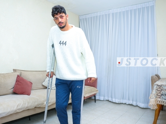 JERUSALEM, ISRAEL - DECEMBER 16, 2025: Qais Haddad, a 21-year-old security team leader from Beit Hanina, at Teddy Stadium. Haddad claims he was brutally attacked and subjected to racial slurs by three plainclothes police officers at the stadium entrance during the match between Beitar Jerusalem and Hapoel Jerusalem. According to Haddad, the assault occurred after he requested the officers to undergo a standard ticket inspection.