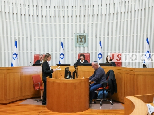 JERUSALEM, ISRAEL - DECEMBER 18, 2025: Hapoel Tel Aviv fans at the Supreme Court during a petition against the Israel Police. The legal action was taken after police officers prevented supporters from entering stadiums while wearing shirts featuring slogans against the police, Maccabi Tel Aviv, and the Kahane Chai movement.