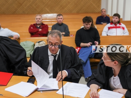 JERUSALEM, ISRAEL - DECEMBER 18, 2025: Hapoel Tel Aviv fans at the Supreme Court during a petition against the Israel Police. The legal action was taken after police officers prevented supporters from entering stadiums while wearing shirts featuring slogans against the police, Maccabi Tel Aviv, and the Kahane Chai movement.
