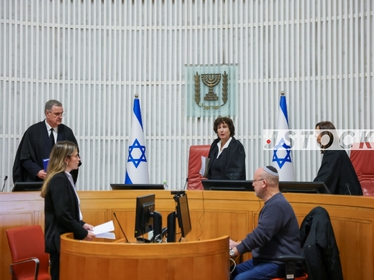JERUSALEM, ISRAEL - DECEMBER 18, 2025: Hapoel Tel Aviv fans at the Supreme Court during a petition against the Israel Police. The legal action was taken after police officers prevented supporters from entering stadiums while wearing shirts featuring slogans against the police, Maccabi Tel Aviv, and the Kahane Chai movement.