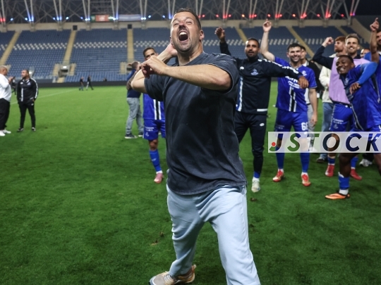 FBL-ISR Israeli Premier League Matchday 26—Hapoel Petah Tikva (in blue) vs. Hapoel Tel Aviv (in red shirts and white shorts), April 11, 2026, at HaMoshava Stadium, Petah Tikva, Israel. This is the final round of the regular season before the playoffs.Photo by Shaul Greenfeld / JStock