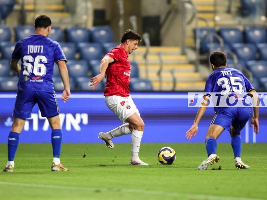 FBL-ISR Israeli Premier League Matchday 26—Hapoel Petah Tikva (in blue) vs. Hapoel Tel Aviv (in red shirts and white shorts), April 11, 2026, at HaMoshava Stadium, Petah Tikva, Israel. This is the final round of the regular season before the playoffs.Photo by Shaul Greenfeld / JStock