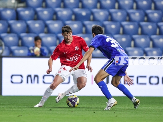FBL-ISR Israeli Premier League Matchday 26—Hapoel Petah Tikva (in blue) vs. Hapoel Tel Aviv (in red shirts and white shorts), April 11, 2026, at HaMoshava Stadium, Petah Tikva, Israel. This is the final round of the regular season before the playoffs.Photo by Shaul Greenfeld / JStock
