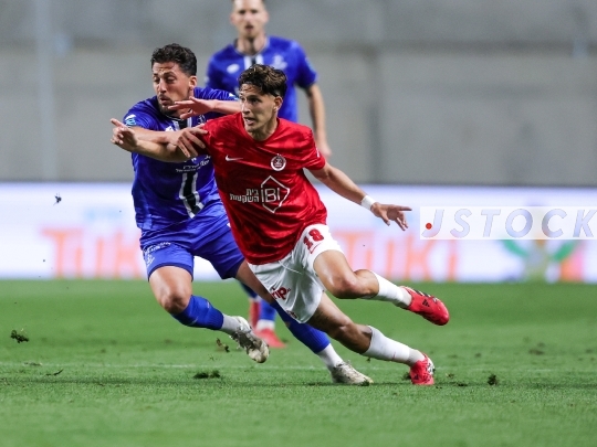 FBL-ISR Israeli Premier League Matchday 26—Hapoel Petah Tikva (in blue) vs. Hapoel Tel Aviv (in red shirts and white shorts), April 11, 2026, at HaMoshava Stadium, Petah Tikva, Israel. This is the final round of the regular season before the playoffs.Photo by Shaul Greenfeld / JStock
