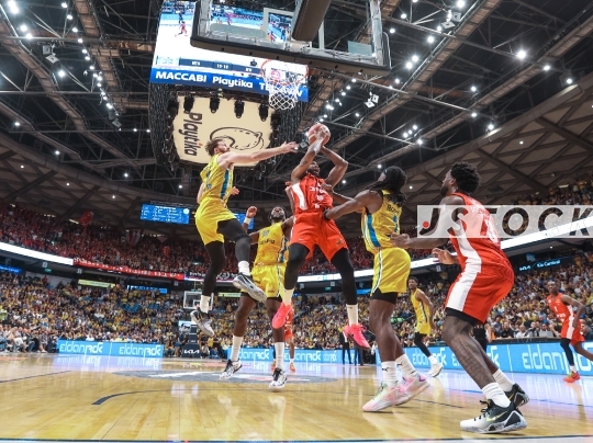 BKB-ISR Premier League Playoff Final – Maccabi Tel Aviv (in yellow) vs. Hapoel Jerusalem (in red), June 9, 2025, Tel Aviv, Israel.