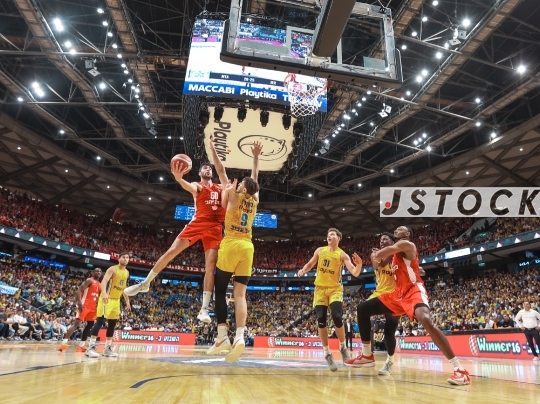BKB-ISR Premier League Playoff Final – Maccabi Tel Aviv (in yellow) vs. Hapoel Jerusalem (in red), June 9, 2025, Tel Aviv, Israel.