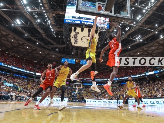 BKB-ISR Premier League Playoff Final – Maccabi Tel Aviv (in yellow) vs. Hapoel Jerusalem (in red), June 9, 2025, Tel Aviv, Israel.