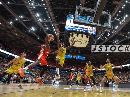 BKB-ISR Premier League Playoff Final – Maccabi Tel Aviv (in yellow) vs. Hapoel Jerusalem (in red), June 9, 2025, Tel Aviv, Israel.