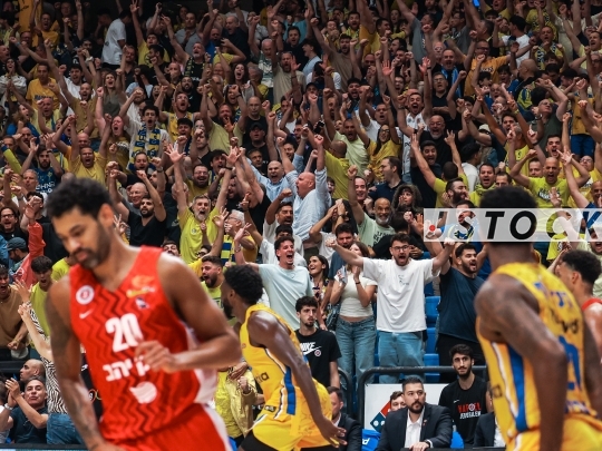 BKB-ISR Premier League Playoff Final – Maccabi Tel Aviv (in yellow) vs. Hapoel Jerusalem (in red), June 9, 2025, Tel Aviv, Israel.