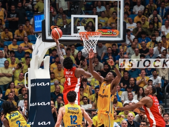 BKB-ISR Premier League Playoff Final – Maccabi Tel Aviv (in yellow) vs. Hapoel Jerusalem (in red), June 9, 2025, Tel Aviv, Israel.