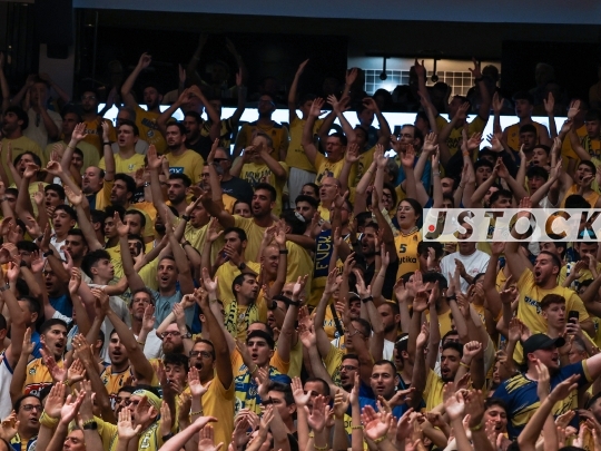 BKB-ISR Premier League Playoff Final – Maccabi Tel Aviv (in yellow) vs. Hapoel Jerusalem (in red), June 9, 2025, Tel Aviv, Israel.