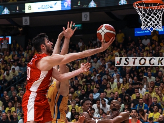 BKB-ISR Premier League Playoff Final – Maccabi Tel Aviv (in yellow) vs. Hapoel Jerusalem (in red), June 9, 2025, Tel Aviv, Israel.