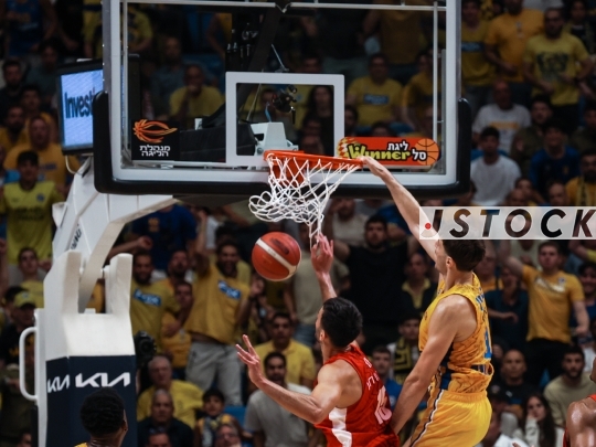 BKB-ISR Premier League Playoff Final – Maccabi Tel Aviv (in yellow) vs. Hapoel Jerusalem (in red), June 9, 2025, Tel Aviv, Israel.