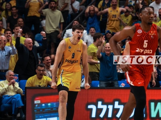 BKB-ISR Premier League Playoff Final – Maccabi Tel Aviv (in yellow) vs. Hapoel Jerusalem (in red), June 9, 2025, Tel Aviv, Israel.
