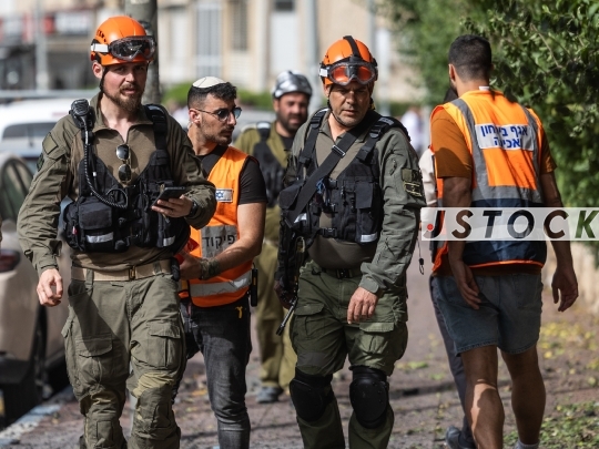 Ramat Gan, Israel, April 04, 2026 Iranian Cluster Munition Strike Across Central IsraelDay 36 of the war between Israel, the United States, and Iran. An Iranian cluster munition missile launched at central Israel caused damage to buildings and vehicles in several locations across the Gush Dan region, including Ramat Gan, Petah Tikva, Bnei Brak, Rosh HaAyin, and Givatayim. Magen David Adom reported one 50-year-old man sustained minor injuries from the blast wave, April 04, 2026, Israel.Photo by Shaul Greenfeld JStock