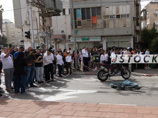 Ramat Gan, Israel, April 04, 2026 Iranian Cluster Munition Strike Across Central IsraelDay 36 of the war between Israel, the United States, and Iran. An Iranian cluster munition missile launched at central Israel caused damage to buildings and vehicles in several locations across the Gush Dan region, including Ramat Gan, Petah Tikva, Bnei Brak, Rosh HaAyin, and Givatayim. Magen David Adom reported one 50-year-old man sustained minor injuries from the blast wave, April 04, 2026, Israel.Photo by Shaul Greenfeld JStock