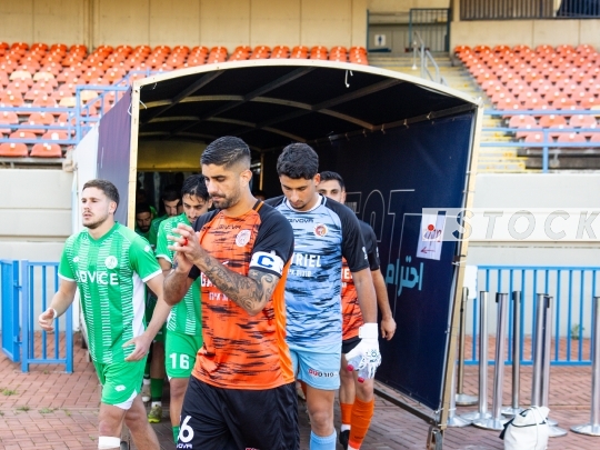 FBL-ISR Liga Leumit (Second Division): Hapoel Kfar Saba (in green) vs. Hapoel Kfar Shalem (in orange), March 24, 2026, at Ramat Gan Stadium in Ramat Gan, Israel. Three weeks into the war involving Israel, the United States, and Iran, Israeli football returns with this rescheduled second-division match. The Premier League is set to return following the international break, pending approval from the IDF. Photo by Shaul Greenfeld / JStock.