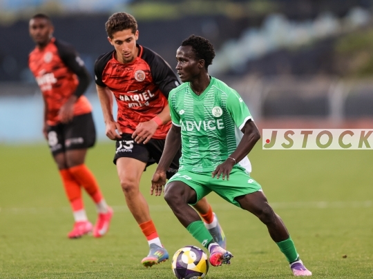 FBL-ISR Liga Leumit (Second Division): Hapoel Kfar Saba (in green) vs. Hapoel Kfar Shalem (in orange), March 24, 2026, at Ramat Gan Stadium in Ramat Gan, Israel. Three weeks into the war involving Israel, the United States, and Iran, Israeli football returns with this rescheduled second-division match. The Premier League is set to return following the international break, pending approval from the IDF. Photo by Shaul Greenfeld / JStock.