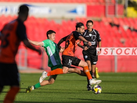 FBL-ISR Liga Leumit (Second Division): Hapoel Kfar Saba (in green) vs. Hapoel Kfar Shalem (in orange), March 24, 2026, at Ramat Gan Stadium in Ramat Gan, Israel. Three weeks into the war involving Israel, the United States, and Iran, Israeli football returns with this rescheduled second-division match. The Premier League is set to return following the international break, pending approval from the IDF. Photo by Shaul Greenfeld / JStock.