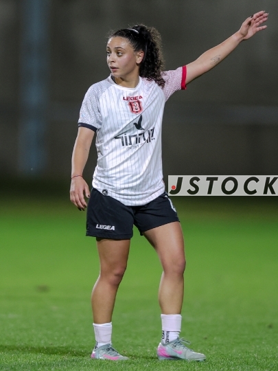 FBL-ISR Women's Premier League, Matchday 21: Maccabi Panterot Ashdod (in red-and-yellow striped shirts) vs. Hapoel Katamon Jerusalem (in white shirts and black shorts), Haberfeld Stadium, Rishon LeZion, Israel, March 26, 2026. The league resumes following an extended hiatus due to the international break and the ongoing conflict involving Israel, the United States, and Iran. Photo by Shaul Greenfeld/JStock.
