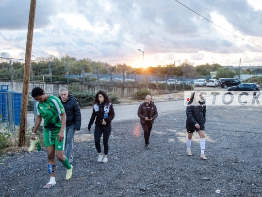 FBL-ISR Women’s Premier League, Matchday 21—Panterot Ashdod vs. Hapoel Katamon Jerusalem, March 26, 2026, Rishon LeZion, Israel. War routine: Day 27 of the war involving the United States, Israel, and Iran. The Women’s Premier League returned from both the international break and the forced wartime hiatus on a day marked by 10 rocket sirens. During the match, two rocket alerts were triggered, forcing the players to evacuate to a protected area off the pitch. Between sirens, the Panterot Ashdod coach conducted a tactical briefing with the players inside the shelter. Photo by Shaul Greenfeld/JStock.