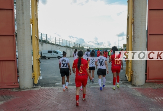 FBL-ISR Women’s Premier League, Matchday 21—Panterot Ashdod vs. Hapoel Katamon Jerusalem, March 26, 2026, Rishon LeZion, Israel. War routine: Day 27 of the war involving the United States, Israel, and Iran. The Women’s Premier League returned from both the international break and the forced wartime hiatus on a day marked by 10 rocket sirens. During the match, two rocket alerts were triggered, forcing the players to evacuate to a protected area off the pitch. Between sirens, the Panterot Ashdod coach conducted a tactical briefing with the players inside the shelter. Photo by Shaul Greenfeld/JStock.