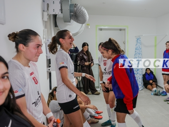 FBL-ISR Women’s Premier League, Matchday 21—Panterot Ashdod vs. Hapoel Katamon Jerusalem, March 26, 2026, Rishon LeZion, Israel. War routine: Day 27 of the war involving the United States, Israel, and Iran. The Women’s Premier League returned from both the international break and the forced wartime hiatus on a day marked by 10 rocket sirens. During the match, two rocket alerts were triggered, forcing the players to evacuate to a protected area off the pitch. Between sirens, the Panterot Ashdod coach conducted a tactical briefing with the players inside the shelter. Photo by Shaul Greenfeld/JStock.