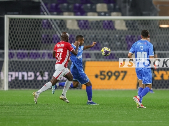 FBL-ISR Israeli State Cup Semi-Final – Hapoel Beer Sheva (in red) vs. Bnei Yehuda Tel Aviv (in blue), April 09, 2026, Bloomfield Stadium, Tel Aviv, Israel. The match takes place one day after the ceasefire announcement between Iran and Israel. Due to lingering security restrictions, the game is being played behind closed doors without spectators.