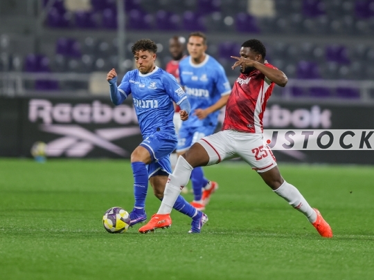 FBL-ISR Israeli State Cup Semi-Final – Hapoel Beer Sheva (in red) vs. Bnei Yehuda Tel Aviv (in blue), April 09, 2026, Bloomfield Stadium, Tel Aviv, Israel. The match takes place one day after the ceasefire announcement between Iran and Israel. Due to lingering security restrictions, the game is being played behind closed doors without spectators.