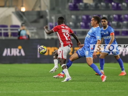 FBL-ISR Israeli State Cup Semi-Final – Hapoel Beer Sheva (in red) vs. Bnei Yehuda Tel Aviv (in blue), April 09, 2026, Bloomfield Stadium, Tel Aviv, Israel. The match takes place one day after the ceasefire announcement between Iran and Israel. Due to lingering security restrictions, the game is being played behind closed doors without spectators.