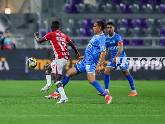 FBL-ISR Israeli State Cup Semi-Final – Hapoel Beer Sheva (in red) vs. Bnei Yehuda Tel Aviv (in blue), April 09, 2026, Bloomfield Stadium, Tel Aviv, Israel. The match takes place one day after the ceasefire announcement between Iran and Israel. Due to lingering security restrictions, the game is being played behind closed doors without spectators.
