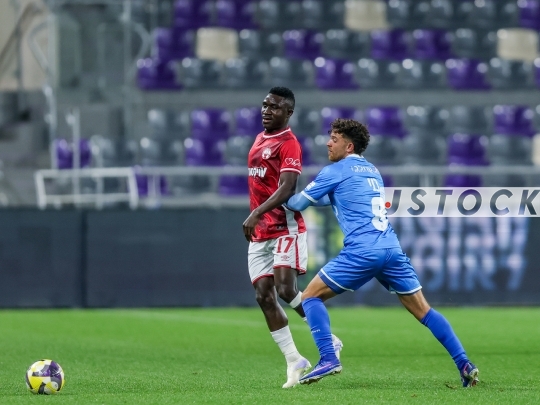 FBL-ISR Israeli State Cup Semi-Final – Hapoel Beer Sheva (in red) vs. Bnei Yehuda Tel Aviv (in blue), April 09, 2026, Bloomfield Stadium, Tel Aviv, Israel. The match takes place one day after the ceasefire announcement between Iran and Israel. Due to lingering security restrictions, the game is being played behind closed doors without spectators.