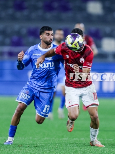 FBL-ISR Israeli State Cup Semi-Final – Hapoel Beer Sheva (in red) vs. Bnei Yehuda Tel Aviv (in blue), April 09, 2026, Bloomfield Stadium, Tel Aviv, Israel. The match takes place one day after the ceasefire announcement between Iran and Israel. Due to lingering security restrictions, the game is being played behind closed doors without spectators.