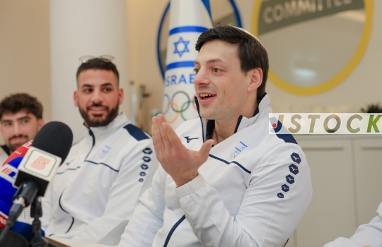 Press conference of the Israeli Bobsleigh team for the Winter Olympics, January 28, 2026, The Olympic Experience, Tel Aviv, Israel.