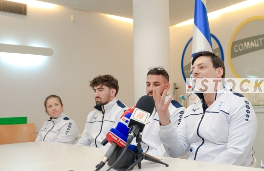 Press conference of the Israeli Bobsleigh team for the Winter Olympics, January 28, 2026, The Olympic Experience, Tel Aviv, Israel.
